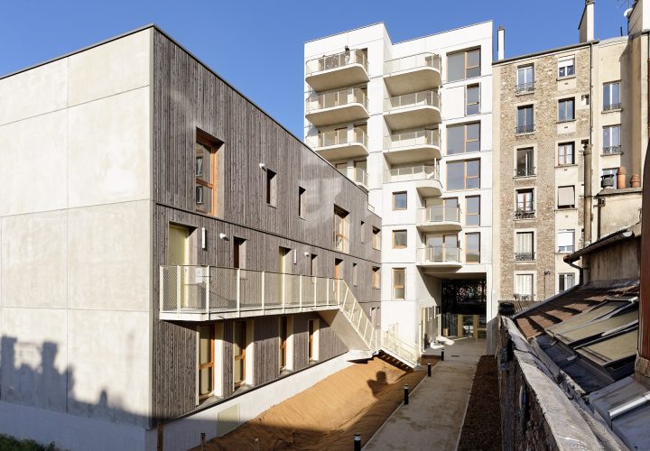 La résidence Ivry Gare se compose d’un bâtiment de deux volumes : le premier de sept étages, côté rue de la Gare se prolonge en coeur d’îlot; et le second de deux étages, à l’arrière, donne sur un local artisanal. Une ruelle piétonne traversante paysagère amène à un jardin partagé en fond de cours. Tous les appartements sont dotés d’un extérieur : jardins, balcons ou terrasses.