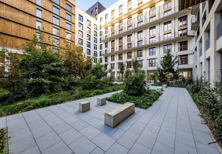 Avec son grand coeur d’îlot, SEINERGY a fait de la nature sa meilleure alliée. Riche en diversité, sa palette végétale est un véritable refuge pour la biodiversité. Au coeur du jardin intérieur, un bassin de récupération des eaux de pluie permet de réutiliser l’eau de manière responsable et contribue à entretenir une atmosphère apaisante et rafraîchissante ! Accueillant des oiseaux et offrant une ombre bienvenue, de nombreux arbres de haute tige occupent les espaces pour le plus grand plaisir des résidents.